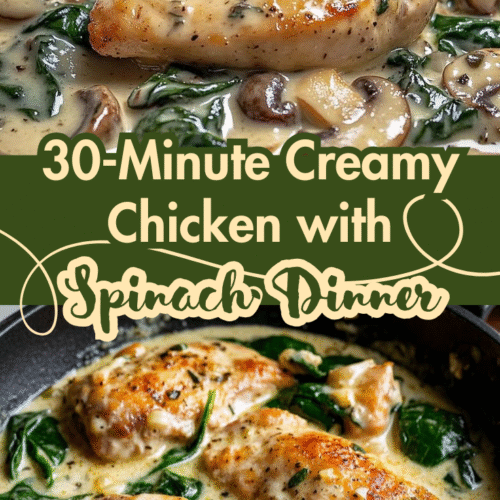 This creamy chicken with spinach is a quick, delicious, and comforting dish, perfect for busy weeknights. Tender chicken breasts are cooked in a rich, creamy garlic sauce with spinach and Parmesan, making it a flavorful and satisfying meal that’s easy to prepare in just 30 minutes.