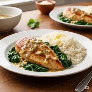 Creamy chicken with spinach is a hearty, flavorful dish perfect for a cozy dinner or a special family meal. The combination of tender chicken, wilted spinach, and rich creamy sauce makes for a comforting and satisfying dish. Here’s how to enhance the flavors and serve it like a pro: