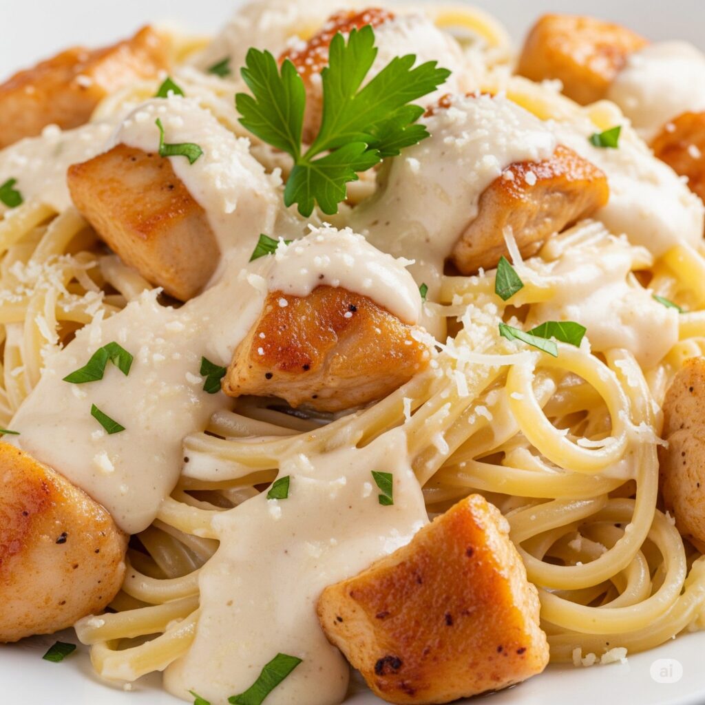 Chicken Alfredo is a rich and creamy pasta dish that combines tender chicken with a luscious Alfredo sauce made from butter, heavy cream, and Parmesan cheese.