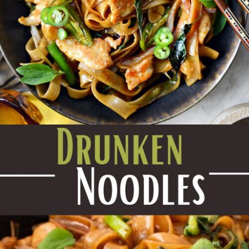 Drunken Noodles, also known as Pad Kee Mao, is a popular Thai stir-fry dish that combines the bold flavors of Thai basil, garlic, and chili with tender rice noodles and savory chicken.